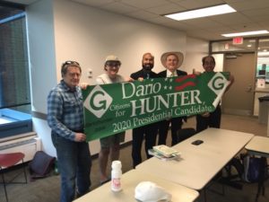 Presidential Green candidate Dario Hunter spoke at Arlington Central Library on July 16, Green Party members gathered to hear Ohio Green candidate Dario Hunter speak about his ideas for his presidential campaign to obtain the Green Party national nomination in 2020. He is an elected member of the Youngstown Ohio school board, an environmental attorney, rabbi, and son of an immigrant. Visit his website for more information www.dariohunter.com Dario is pictured in the photo (third from the left). Arlington Green member Kirit Mookerjee is on the far right.